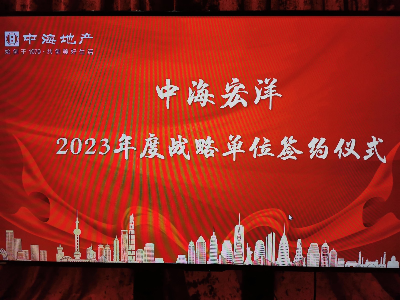 2023年5月12日,中海宏洋集團在深圳中信城市廣場舉行2023年度戰略單位簽約儀式,江蘇華建作為唯一新增總包單位入選戰略合作商名單。江蘇華建總經理吳碧橋、中海宏洋副總經理張海軍代表雙方簽約。