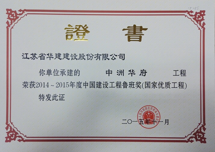 中洲華府工程位于深圳市寶安區(qū)創(chuàng)業(yè)路與前進路交匯處,為功能完備的群體高層住宅小區(qū),地下2層,地上30-32層,總建筑面積19.81萬平方米,建筑高度99.9米。工程先后獲國家實用新型專利3項,國家級QC成果獎1項,省級工法1項,并榮獲廣東省建設工程優(yōu)質(zhì)獎、廣東省建筑業(yè)綠色施工示范工程和江蘇省建筑業(yè)新技術應用示范工程等獎項。2015年,被中建協(xié)評為2014—2015年度中國建設工程魯班獎(國家優(yōu)質(zhì)工程)。