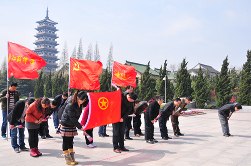 總部開展祭掃革命烈士墓活動 時間:2013-04-03 4275 4月3日,總部機關黨支部和團委聯合開展祭掃革命烈士墓活動,總部機關、華建置業20余名同志參加。紀委副書記、黨辦主任陳緒寶主持活動,副總經理兼總工程師程杰帶領大家向烈士紀念碑三鞠躬,并敬獻了鮮花,隨后大家共同參觀了烈士英雄事跡展。