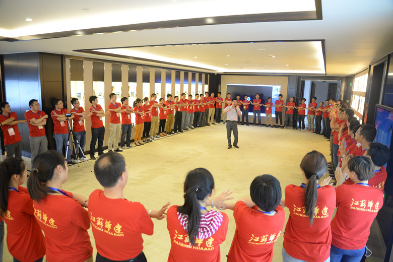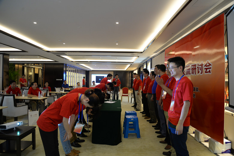 下午,大家還舉行了短暫的拓展活動,在簡單的游戲中悟出了深刻的成長道理。隨后,4個組各一男一女2名代表和1名部門負責人就如何拓展公司員工成長的通道和途徑分享了各自的想法和建議。陸董事長向表現(xiàn)優(yōu)異的員工代表贈送了書籍。12名青年員工代表行正式拜師禮,拜12名老員工為師,師徒共同在青年員工成長目標導航圖上簽字,活動在《點一盞心燈給你》的音樂聲中圓滿結束。