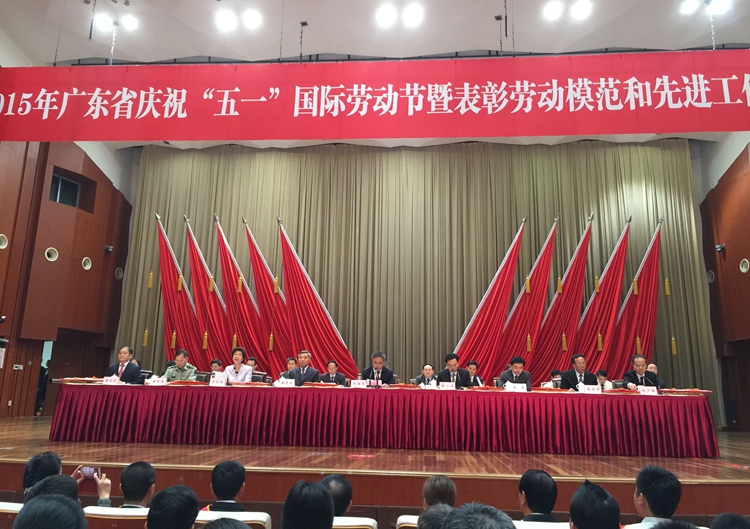 4月27日上午,2015年廣東省慶祝“五一”國際勞動(dòng)節(jié)暨表彰勞動(dòng)模范和先進(jìn)工作者大會(huì)在廣州白云國際會(huì)議中心舉行。廣東省委書記胡春華、省長朱小丹等領(lǐng)導(dǎo)參加會(huì)議。