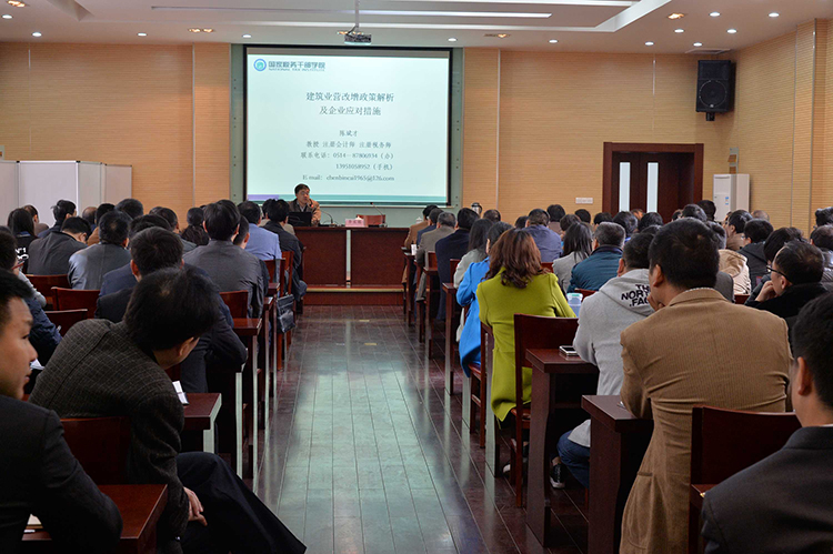 公司開展營改增試點業務培訓 時間:2016-04-11 3608 4月5日和6日,公司財務部和華建學院聯合組織的營改增試點業務培訓分別在揚州和北京開班。公司總部、北京和上海區域公司、駐揚分支機構及公司聯盟企業的主要負責人、經營和財務工作分管領導及有關人員共計210余人參加了培訓。 此次培訓特邀市國家稅務學院陳斌才教授主講。陳教授就建筑業營改增政策及企業應對措施作了專業分析和講解,并與參培人員進行了互動交流,使參培人員對建筑業營改增有關政策有了更深刻的理解和認識,達到了預期效果。 按照培訓工作計劃,本月中旬還將在深圳和海南兩地組織區域公司有關人員培訓。