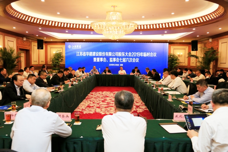 128日下午,江蘇華建股東大會2019年臨時會議暨董事會、監事會七屆六次會議在深圳召開。會議由王宏董事長主持,公司股東單位代表和董事、監事出席會議,公司高級管理人員、副三總師、各分公司主要負責人及律師團代表列席會議。