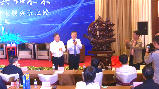 合作伙伴代表海南省甘肅商會、甘肅景園房地產開發(集團)有限公司向江蘇華建贈送了寓意一帆風順的擺件。