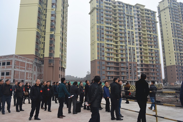 在官盛春天廣場,新區(qū)管委會副主任、廣安區(qū)委常委李榮盛從新區(qū)整體部局、產(chǎn)業(yè)規(guī)劃發(fā)展、招商引資及項目建設(shè)現(xiàn)狀等方面向代表團進行了詳細(xì)解說。步入寬敞整潔的春天廣場,看到即將完工的商鋪和塔樓嶄新的外墻立面,代表們紛紛表示“很震撼”,對政府高檔次規(guī)劃、高標(biāo)準(zhǔn)建設(shè)新區(qū)安置房表示肯定,同時不時對我公司的建設(shè)速度和質(zhì)量點贊。