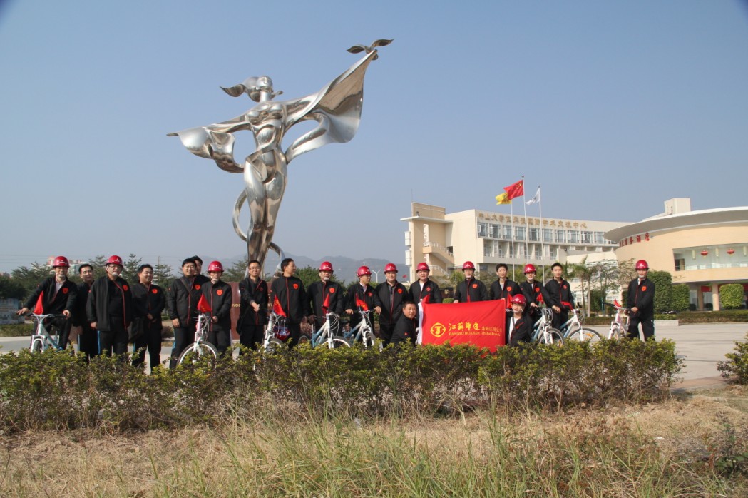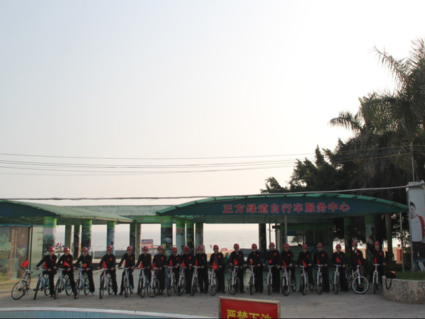 2012年1月1日上午9時,珠海區(qū)域公司全體員工在公司經(jīng)理室的帶領(lǐng)下,統(tǒng)一著裝,頭戴印有江蘇華建標(biāo)識的安全頭盔,騎著統(tǒng)一插有江蘇華建小紅旗的自行車,沿著珠海海濱綠道開展騎自行車迎新年活動。騎行的起點(diǎn)是珠海海濱浴場,終點(diǎn)是珠海淇澳島,來回全程56公里。騎行過程中,隊伍有序安全行進(jìn),引導(dǎo)車上醒目的江蘇華建大旗迎風(fēng)招展,每輛自行車前面的江蘇華建小紅旗也分外引人注目??妵鴺锌偨?jīng)理身先士卒,騎行在隊伍的最前面,無論是年近6旬的老員工,還是剛工作不久的新員工,個個爭先恐后,奮勇向前,江蘇華建這支特殊的“騎兵隊”在新年的第一天飛行在珠海的海濱綠道上,形成了一道亮麗的風(fēng)景線,引得許多路人和游客紛紛駐足觀望,許多攝影愛好者也紛紛舉起手中的相機(jī)爭相拍照。 這次元旦騎自行車活動既是一次低碳環(huán)保生活的宣傳,也是一次江蘇華建員工良好精神風(fēng)貌的展現(xiàn),通過這次活動既鍛煉了員工的體魄,更激發(fā)了員工們新的一年里奮發(fā)向上,團(tuán)結(jié)拼搏,奔向新未來的昂揚(yáng)斗志。