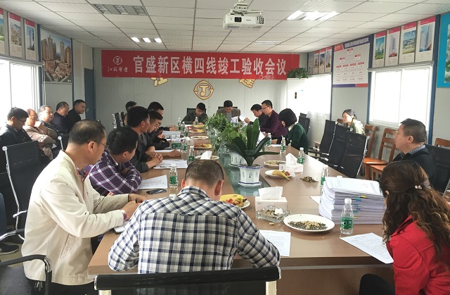 廣安項目橫四線通過竣工驗收 時間:2016-04-09 3099 4月8日下午,廣安項目橫四線竣工驗收會議在項目現場會議室召開,廣安區住建局副局長周春蘭主持會議。經項目監理、設計、區質監、交通等多個單位及業主現場代表實測檢查、總結匯報后,一致同意工程驗收合格。橫四線作為一個單位工程,是官盛新區“三縱四橫”七條次干道之一,道路全長1.01km,路幅寬度25m,雙向四車道,全線均為路基形式。
