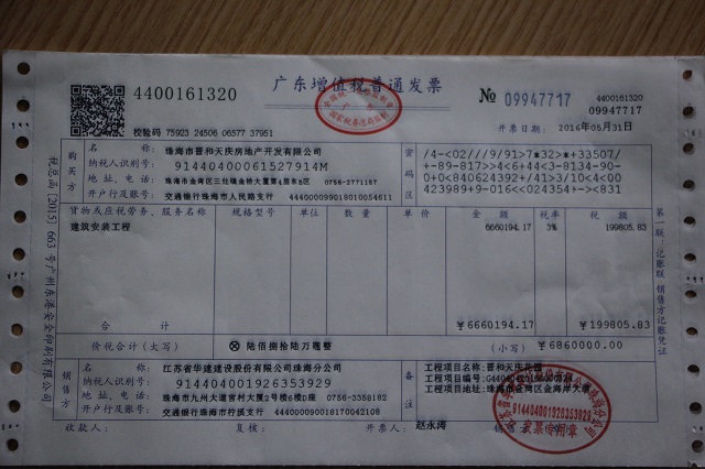 珠海區域公司第一張增值稅發票成功開具 時間:2016-06-01 2850 建筑行業“營改增”自5月1日起正式實施,公司領導高度重視“營改增”工作,先后完成了稅控設備軟硬件更新、數次的“營改增”知識培訓及交流會,并在主管國稅局完成了有關一般納稅人認定、增值稅發票額度調整、公司老項目備案等工作。 5月31日,財務處成功開具了第一張增值稅普通發票,此票為公司第五項目部承擔施工任務的晉和天慶花園總承包工程使用,走出了公司“營改增”工作的堅實一步。