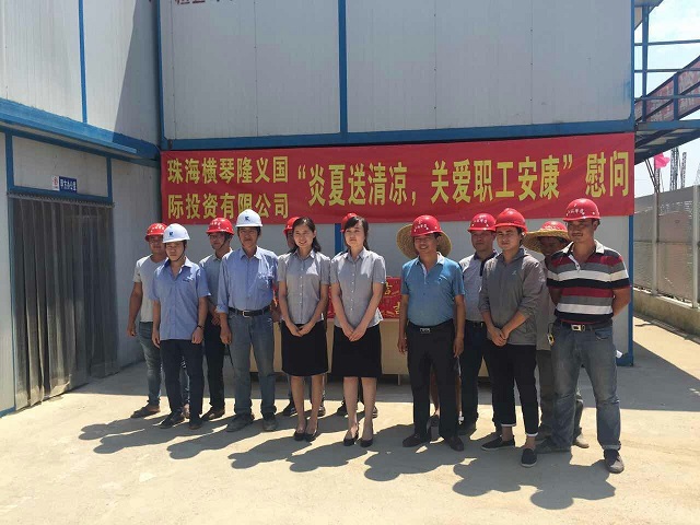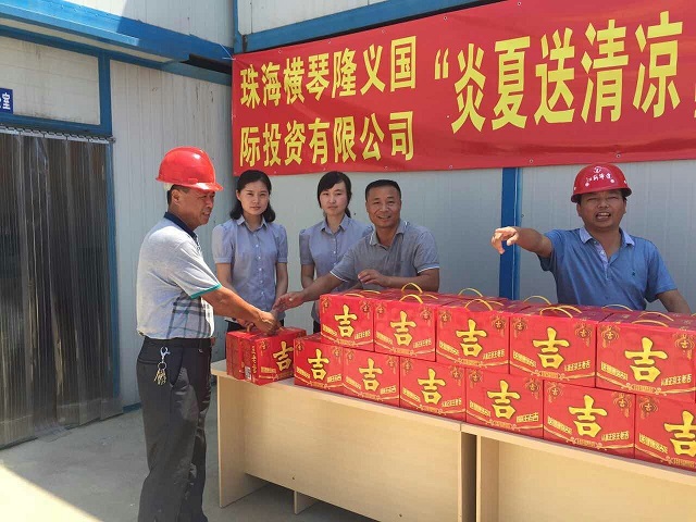 炎炎夏日送清涼 時間:2016-08-01 3799 7月30日上午,珠海分公司橫琴隆義廣場項目部工地熱浪朝天,機聲隆隆,人來人往,一派繁忙景象。一支由江蘇華建直五項目部和橫琴隆義投資公司共同組成的“送清涼”小分隊也在工地上奔忙著,項目經(jīng)理姚寧與投資公司負責人王艷、許珂等正在將一箱箱王老吉飲料有條不紊地送到建筑工人手中,讓廣大一線職工在炎炎烈日下感受到陣陣清涼。