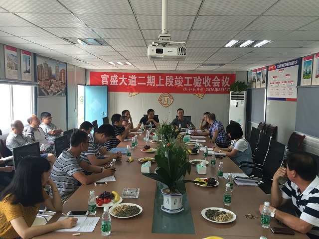廣安項目官盛大道二期上段順利通過竣工驗收 時間:2016-08-05 2909 8月5日上午,廣安項目官盛大道二期上段順利通過竣工驗收。廣安區住建局副局長周春蘭主持驗收會議,經項目監理、設計、區住建及質監等單位和業主現場代表實測檢查、分別總結匯報后,一致同意工程驗收合格。 官盛大道二期是廣安官盛新區一條東西向城市主干道,道路全長1598米,標準路幅寬度46-60米,雙向六車道,設計時速60km/h。其中上段610米,作為一個單位工程單獨進行驗收。