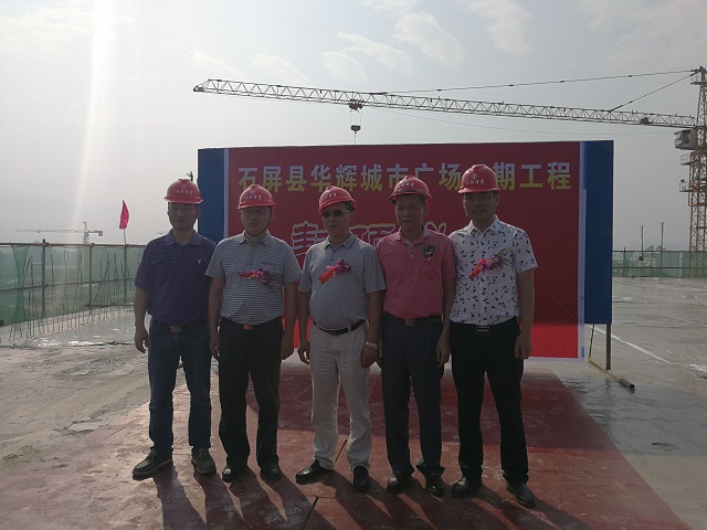 公司首個在滇項目——華輝城市廣場順利封頂 時間:2017-05-07 3050 5月6日,公司首個在滇項目——云南石屏縣華輝城市廣場舉行主體結構封頂儀式。重慶分公司總經理嚴正濤出席儀式。 華輝城市廣場項目位于石屏縣新城核心中央地段,為該縣城的“CBD”。整個建筑面積為18萬平方米,地上面積為13.4萬㎡,地下4.5萬平方米。其中一期工程建筑面積為93843.78平方米,承包范圍土建、水電、消防、門窗、室外園林綠化等工程(即除電梯工程外),一期主要以商業開發為主,項目結構為框架,以3層結構為主,預計2017年6月竣工。