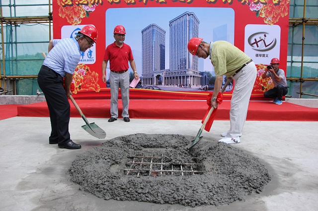 橫琴隆義廣場實現主體結構全面封頂 時間:2017-08-18 3315 2017年8月18日,第五項目部承擔施工任務的橫琴隆義廣場項目舉行主體結構封頂儀式。珠海橫琴隆義國際投資有限公司董事長馬國義,珠海公司黨委書記繆國樞、總工程師周學軍、總會計師馮喜平及設計單位、參建單位、監理單位等50余人共同見證這一喜悅時刻。 該工程自開工籌備以來即被列為我公司重點創優項目,截止目前已獲評珠海市安全文明示范工地;通過廣東省安全文明示范工地初評;通過全國綠色施工示范工地過程驗收。較好地展現了我公司的綜合實力及企業形象。