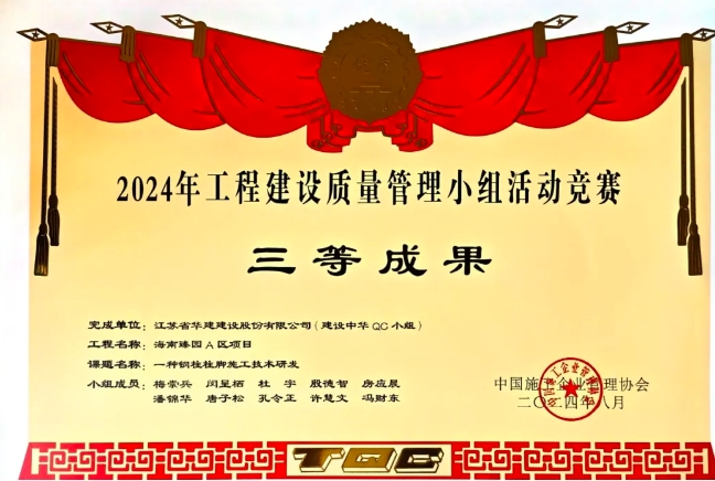 近日,江蘇華建海南分公司在2024年度工程建設質(zhì)量管理小組活動競賽中再創(chuàng)佳績,斬獲國家級、...