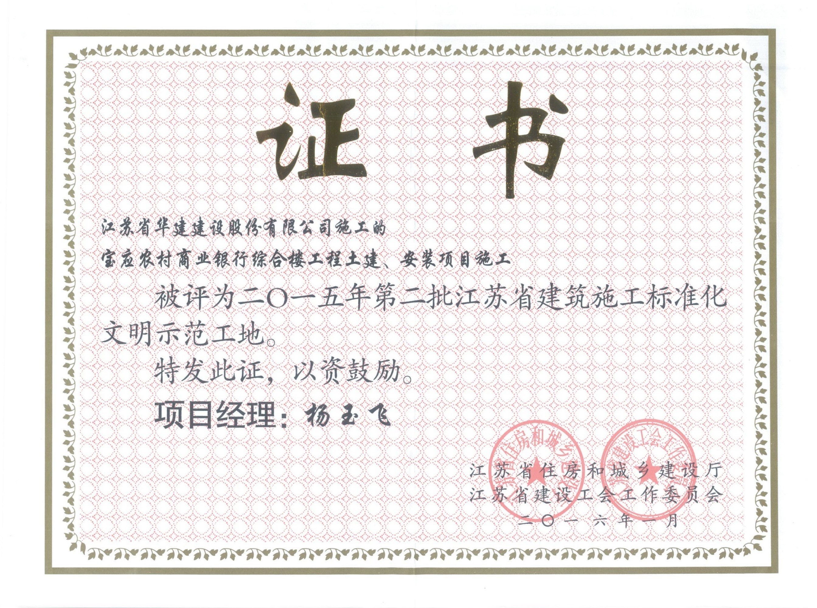 AAA級安全文明標準化工地,是由中國建筑業協會建筑安全與機械分會(原建筑安全分會)實施評選的獎項,是安全文明施工方面的最高獎項。 截止2020年末,江蘇華建共計10項工程入選此獎項。