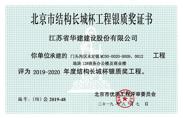 近日,北京市工程建設(shè)質(zhì)量管理協(xié)會(huì)公布了2019-2020年度第一批北京市建筑結(jié)構(gòu)長(zhǎng)城杯獲獎(jiǎng)工程名單,由我司承建的門頭溝區(qū)永定鎮(zhèn)MC00-0020-0009、0012地塊6#住宅樓及商業(yè)樓項(xiàng)目和門頭溝區(qū)永定鎮(zhèn)MC00-0020-0009、0012地塊12#商務(wù)辦公樓及商業(yè)樓項(xiàng)目均被評(píng)為2019-2020年度結(jié)構(gòu)長(zhǎng)城杯銀質(zhì)獎(jiǎng)工程。