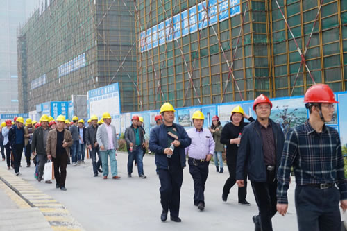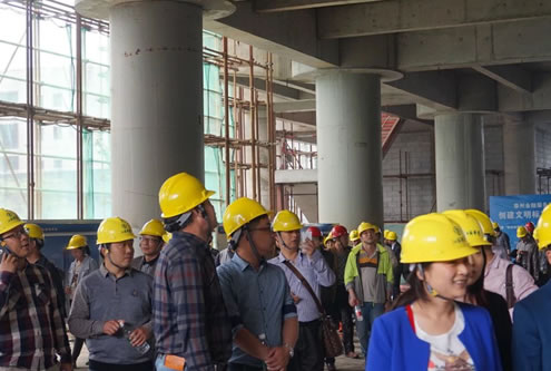 4月21日下午,江蘇華建蘇北分公司承建的泰州金融服務(wù)中心現(xiàn)場,彩旗獵獵,熱鬧非凡,泰州市創(chuàng)精品工程觀摩會(huì)隆重舉行,泰州市建工局副局長王京陵以及泰州市各市(區(qū))建筑業(yè)主管部門工程創(chuàng)優(yōu)負(fù)責(zé)人、建筑業(yè)協(xié)會(huì)負(fù)責(zé)人、全市二級(jí)以上資質(zhì)企業(yè)總工程師、技術(shù)負(fù)責(zé)人、創(chuàng)優(yōu)企業(yè)總工程師、項(xiàng)目經(jīng)理、技術(shù)負(fù)責(zé)人等共計(jì)400人參加了觀摩活動(dòng),與會(huì)人員對(duì)江蘇華建在建設(shè)金融服務(wù)中心興業(yè)大廈過程中創(chuàng)下了江蘇泰州地區(qū)多個(gè)之最表示了濃厚興趣,多個(gè)之最包括:高度最高(地上58層、設(shè)計(jì)高度: