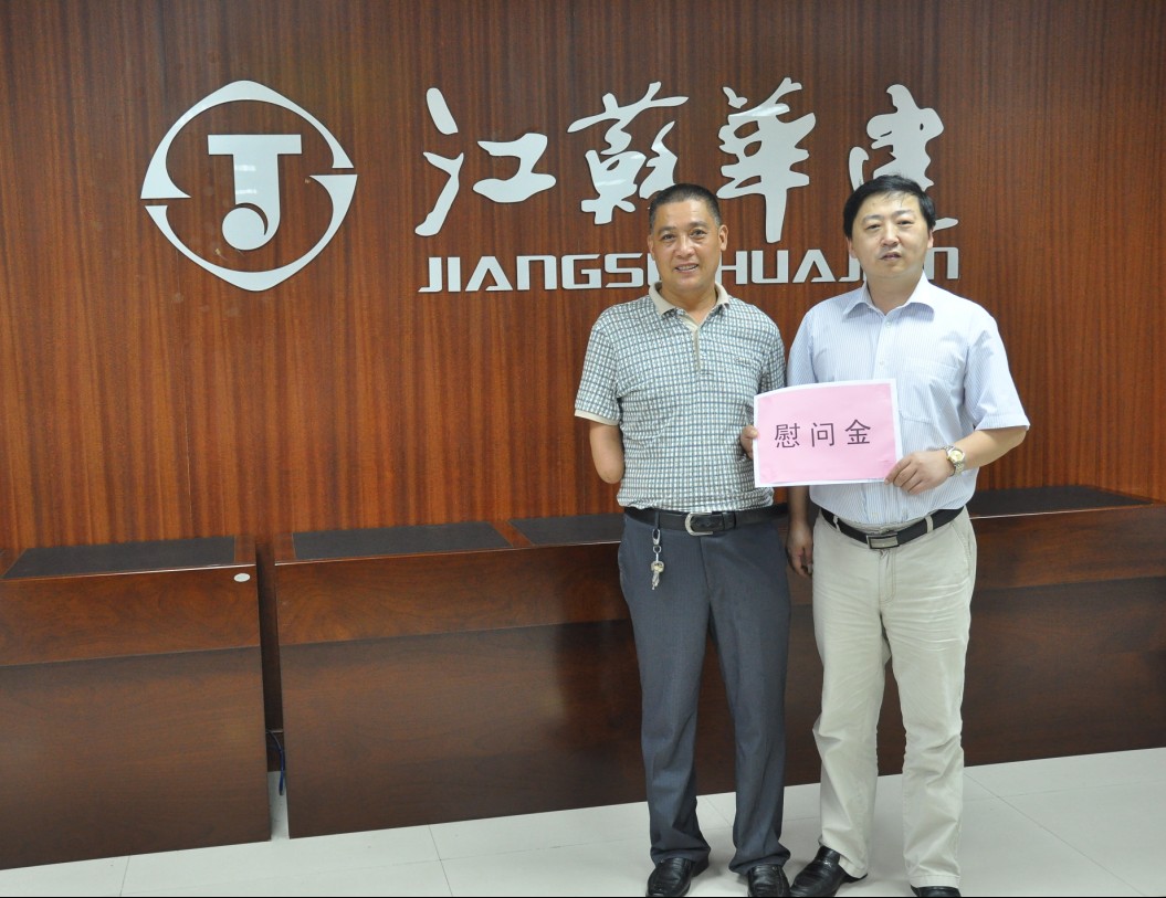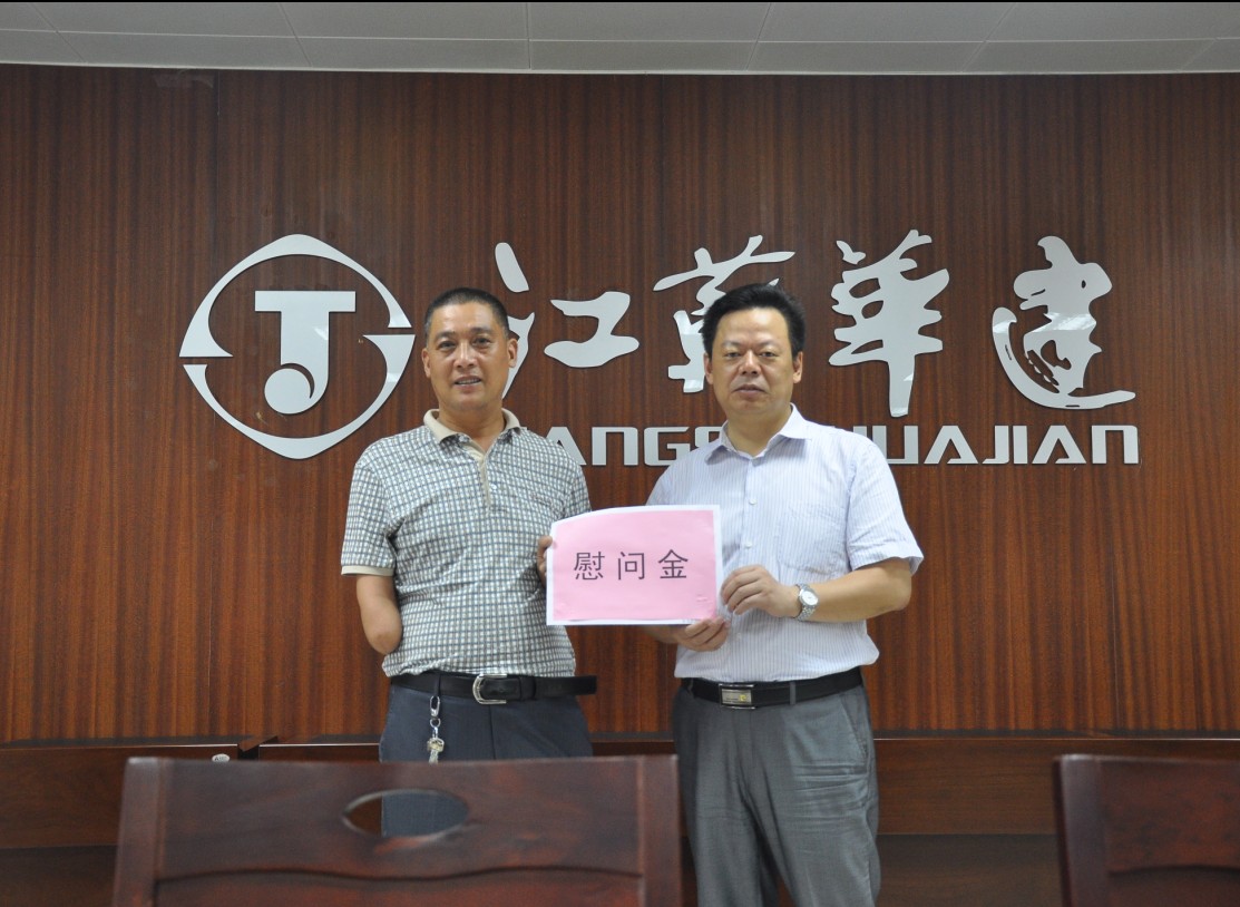 惠州區域公司慰問傷殘員工 時間:2013-08-06 3749 夏日炎炎,酷暑難耐。江蘇華建副總經理、惠州分公司總經理華恒榮率分公司工會親切慰問了在惠州分公司第九工程處工作的傷殘員工居家應(居家應90年代在寶應工作期間,不慎失去了右膀,被定為三級傷殘)。慰問中,華總詳細了解他的生活、工作情況,并向他發放慰問金,同時要求九處在工作、生活上給予一定的關心。居家應感謝組織對他的關心,表示身殘志不殘,更加積極努力的工作,不辜負組織的期望。惠州分公司總會計師高正金,分公司工會主席王健陪同慰問。