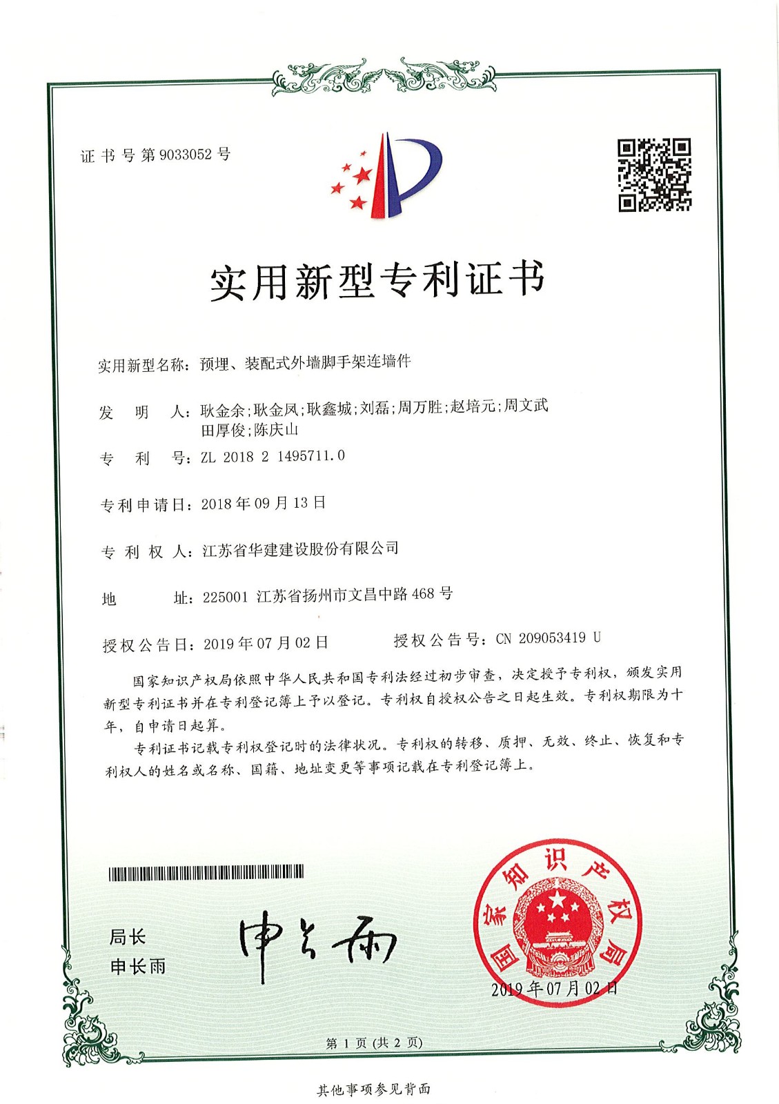 實用新型專利(預(yù)埋、裝配式外墻腳手架連墻件)