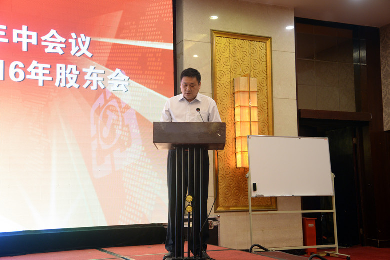 56日下午,華建聯盟年中會議暨聯盟投資公司2016年股東會在揚州藍天大廈召開,宗有農主持會議。會議首先聽取和審議了聯盟投資公司總經理李長棟所作的經營層工作報告和2015年度分紅方案的說明以及關于今年重點工作安排的說明。會議重點聽取了聯盟主席陸金龍作的《找準方向 堅定前行》專題輔導講座。