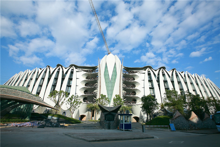 瑪絲菲爾總部中心位于深圳龍華大浪時尚小鎮,占地面積49800m2,建筑面積11萬㎡,總投資10億元。工程建筑外形采用當前最為時尚、最具風格的現代仿生學設計理念,所有建筑元素設計靈感都源于自然。建筑群俯視猶如展翅雄鷹,構件造型都按拋物線、螺旋線等幾何規律設計。該建筑為國內目前面積最大的仿生藝術建筑、深圳龍華時尚小鎮的代表性建筑,在國內建筑界引起了包括中國工程院院士在內的建筑專家的關注,未來有望成為國內時裝秀的主會場。工程于2009年7月開工,目前一期工程裝修完成50%,二期工程主體結構基本完成,進入裝修階段。一期工程1、2號廠房設有27對計54個葉片,每對葉片造型都不一致。中間設蓮花狀交通塔,屋頂設有波浪狀屋蓋。二期工程3、4號廠房分別設有6個雙曲葉面板、5片網格梁和22個Y型鋼柱。